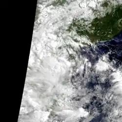 Tropical Depression 07W developed in the monsoon trough on June 29, well east of the Philippines.[20] Warnings were initiated at 0000 UTC June 3[20] when the system was approximately 250 km (160 mi) southeast of Dongsha.[4] It reached its maximum intensity shortly before landfall[20] on July 4.[4] Flooding associated with Tropical Depression 07W in western Guangdong Province killed four people and left two others missing, and destroyed over 6,700 houses while leaving another 50,000 damaged. 120,000 hectares (1,200 square kilometres; 460 square miles) of farmland were ruined, and irrigation facilities were damaged.[1] Total losses from the storm in Guangdong were estimated to be $114 million (1994 USD).[20] In Guangxi Province, the storm killed six others, and left over 30,000 people homeless.[1]