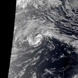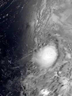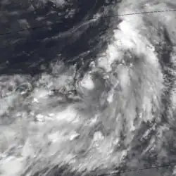On May 8, a large increase in deep convection associated with near-equatorial troughs was noted in the eastern Caroline Islands. By the next morning, visible satellite imagery showed an increase in organization of the deep convection associated with the system, and synoptic reports from buoys confirmed that a low-level circulation centre was present near 5°N 153°E / 5°N 153°E / 5; 153.[11] Slow development ensued, and the system was upgraded to a tropical depression on May 12.[11] At the same time, the Japan Meteorological Agency began tracking the system,[7] about 510 kilometres (320 mi) west-southwest of Guam.[1]