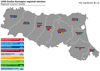 For the first time the President of the Region was directly elected by the people, although the election was not yet binding and the President-elect could have been replaced during the term. This is precisely what happened in 1996, when Antonio La Forgia replaced Bersani, who had been appointed minister in Prodi I Cabinet, and again in 1999, when La Forgia was replaced by Vasco Errani.