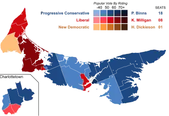 The 1996 Prince Edward Island general election was held on November 18, 1996.[1] It was the first election in the province's history to not use multi-member constituencies, and instead elect a single member in each of 27 districts. (Previously, since 1873 the province had been divided into 15 or 16 districts, each electing two members.)