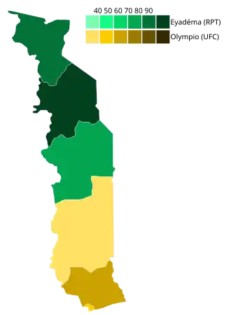 | Gnassingbé Eyadéma | Rally of the Togolese People | 811,837 | 52.08 |