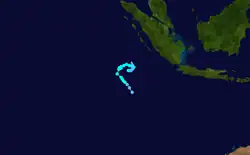 A weak disturbance originated just west of TCWC Perth's area of responsibility about 625 nm west-northwest of Cocos Islands on 7 November. Over the next few days, it moved slowly east-southeastward towards Cocos. Perth issued gale warnings on 10 November in anticipation of tropical cyclone development. However, when the system failed to develop, the final warning was issued that day at 2200 UTC. Joint Typhoon Warning Center never issued warnings for the system, but did issue at Tropical Cyclone Formation Alert on 9 November. The Bureau of Meteorology continued mentioning the system in their Tropical Cyclone Outlooks.[28] The system drifted back westward and was last mentioned on 13 November when it was about 500 nm from Cocos Islands.[3]
