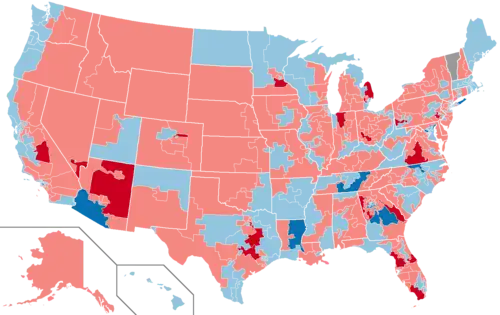 Republicans succeeded in expanding their majority in the House of Representatives by a net gain of eight, resulting in a 229–204 Republican majority. They won the nationwide popular vote by a margin of 4.8 points.[1] This represented just the third time since the American Civil War that the president's party picked up seats in the House of Representatives, following the 1934 and 1998 elections.[2]