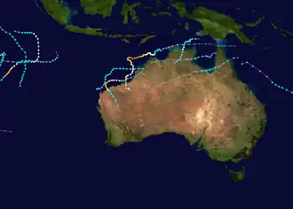 Fay 12–28 March Category 5 severe tropical cyclone 215 km/h (130 mph) 910 hPa (26.87 inHg) Northern Territory, Western Australia Minimal None