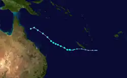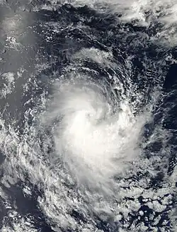 During 20 December, Tropical Disturbance 02F was last noted by the FMS, as it moved into the region from the South Pacific basin about 665 km (415 mi) to the northwest of Honiara in the Solomon Islands.[8] Tropical Disturbance 04F was first noted by the FMS within a broad area of low pressure during 29 December, while it was located on the border with the South Pacific basin, about 100 km (60 mi) to the south of Honiara in the Solomon Islands.[9] The system was located in a moderate area of vertical windshear and was poorly organised with atmospheric convection confined to the system's eastern semicircle.[9] The system subsequently moved south-eastwards and remained poorly organised, before it was last noted by the FMS later that day while it was located to the south of San Cristobal Island.[10]