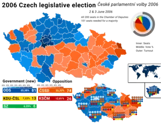 A major scandal broke out a few days before the elections when a classified report by Jan Kubice, the head of the anti-organised crime unit, was leaked to the media, accusing the ruling Social Democratic Party (ČSSD) of corruption and interference in police investigations. The Civic Democratic Party (ODS) and the Social Democratic Party, the two largest parties, obtained their highest percentage of votes ever. Turnout increased from the previous parliamentary elections in 2002.