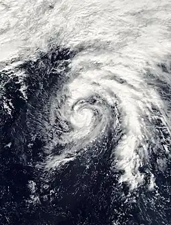 Rammasun continued on a northerly path, and reached a peak of 105 knots (194 km/h) and 915 hPa on May 10.[23] Soon after, the typhoon began slowly weakening. The JTWC downgraded it to a typhoon on May 11.[37] On May 12, the weakening became more rapid, and the JMA downgraded the system to a severe tropical storm,[23] while the JTWC issued its last advisory, noting that it was extratropical.[38] The JMA, however, held onto Rammasun until early May 13, when it downgraded the cyclone to a low and issued its final advisory.[23] Though it never hit land, it was the second strongest May typhoon in recorded history, behind Typhoon Lola of 1986.