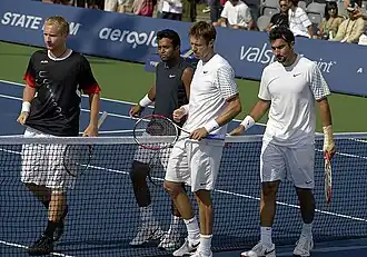 Mahesh Bhupathi and Mark Knowles started competing together in 2008 with a deep run at the Australian Open, in which they defeated defending champions Bryan/Bryan, before losing in the semifinals (lost to Erlich/Ram).[52] Bhupathi and Knowles exited in the first round of the French Open, where Knowles was the defending champion (lost to Huss/Hutchins),[53] and in Wimbledon (lost to Petzschner/Peya).[54] At the US Open, the pair did not get past the third round (lost to González/Mónaco).[46] Despite the poor season in majors, Bhupathi and Knowles reached five finals in Vienna (lost to Mirnyi/Ram), Madrid (lost to Fyrstenberg/Matkowski), Memphis (def. Ratiwatana/Ratiwatana), Dubai (def. Damm/Vízner), Basel (def. Kas/Kohlschreiber).