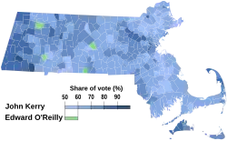 At the state convention on June 7, 2008, Edward O'Reilly received 22.5% of the vote, thereby granting him a spot on the September primary ballot. Kerry, received the vast majority of votes, however, granting him the convention's endorsement.[1] On July 25, O'Reilly challenged Kerry to a series of debates,[2] and the two eventually met for one debate in early September. On September 16, Kerry defeated O'Reilly in the Democratic primary.[3]