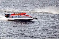 The 2009 UIM F1 H2O World Championship was the 26th season of Formula 1 Powerboat racing. The calendar consisted of sixteen races, two per event, beginning in Portimão, Portugal on 4 April 2009, and ending in Sharjah, UAE on 11 December 2009.[1] The format of two races per weekend was a new feature for 2009, introduced by series promoter Nicolo di San Germano at the official pre-season meeting in March.[2]Guido Cappellini, driving for Zepter Team, was drivers' champion, securing an unprecedented tenth championship crown before retiring at the end of the year.[3]