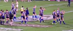 Leeds Rhinos leave the pitch victorious after progressing to the Superleague Grand Final.