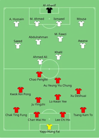 MF 11 Lai Yiu Cheong Yellow card 89' upward-facing green arrow 53'