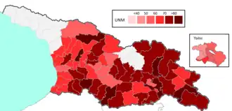 The 2010 Georgian local elections, (Georgian: საქართველოს ადგილობრივი თვითმმართველობის ორგანოების არჩევნები) were held on 30 May 2010, to elect the councils of local government, sakrebulo, and the Mayor of Tbilisi, the capital of Georgia. Direct elections for Tbilisi mayor were held for the first time, with the United National Movement receiving 86.4% of the seats nationwide.