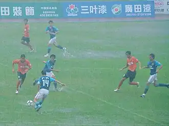 Guangzhou played against Guangzhou rivals Guangdong Sunray Cave in the heavy rain on 29 May 2010