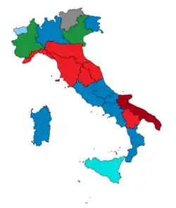 A large round of regional elections in Italy took place on 28–29 March in 13 regions out of 20, including nine of the ten largest ones: Lombardy, Campania, Veneto, Lazio, Piedmont, Emilia-Romagna, Apulia, Tuscany and Calabria.