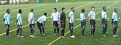 York Region Shooters line-up before the match against Brantford Galaxy at St. Joan Of Arc Turf Field, August 1, 2010