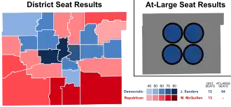 The 2011 Indianapolis City–County Council elections took place on November 8, 2011. All 29 seats were up for re-election, 25 districts and 4 at-large seats, on the Indianapolis City–County Council. Prior to the elections Republicans held a 15–13–1 seat majority. Following the elections Democrats gained control of the council with a 16–13 majority.[1][2] This marked the first time in Indianapolis history that a Republican mayor would lead with a Democratic council.[3]