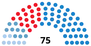 Last election 38 seats, 46.7% 25 seats, 31.0% 0 seats, 1.0%[a]