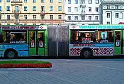 Bus in Minsk in 2012 advertising the 2014 World Championships