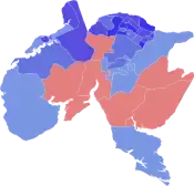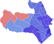 Democratic: 50–60% 60-70% 70–80% 80–90% >90%