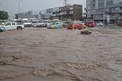 The 2015 Accra floods resulted from heavy continuous rainfall in Accra, the largest city in Ghana.[1] The rain started on 1 June 2015. Other causes of this flood is as a result of the improper planning of settlement in Accra, choked gutters which block the drainage system and a few other human factors. The floods have resulted in heavy traffic on the roads in the city and also a halt in commercial activities as markets were flooded and workers trapped.[2][3] Mayor of Accra Metropolitan Assembly, Alfred Oko Vanderpuije described the flooding as critical.[4] At least 25 people have died from the flooding directly, while a petrol station explosion caused by the flooding killed at least 200 more people.[5][6]