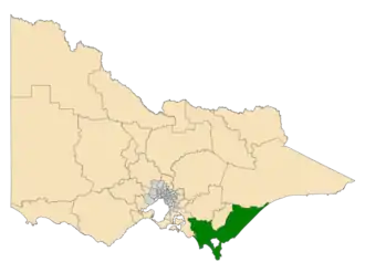 Location of Gippsland South in Victoria