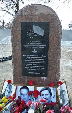 - ^ "Суд закрив справу про пошкодження пам'ятника загиблим біля Палацу спорту". www.mediaport.ua (in Ukrainian). Retrieved 2021-06-02.