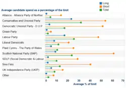 At national party level, the Electoral Commission fined the three largest parties for breaches of spending regulations, levying the highest fines since its foundation:[2] £20,000 for Labour in October 2016,[3] £20,000 for the Liberal Democrats in December 2016,[4] and £70,000 for the Conservative Party in March 2017.[5][2] The higher fine for the Conservatives reflected both the extent of the wrongdoing and 'the unreasonable uncooperative conduct by the Party'.[6][2]