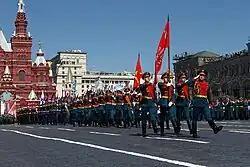This year's parade did, as always, featured the ODON Division which, for the very first time, marched under the banner of the newly established National Guard of Russia, created on 5 April 2016, and replaced the now defunct Internal Troops, together with the Zhukovsky - Gagarin Air Force Academy, under the banner of the 9-month old Russian Aerospace Forces founded in August 2015.