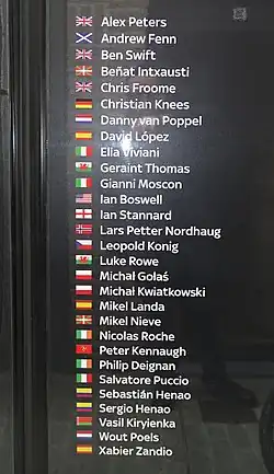 - ^ The riders on the squad were Chris Froome, Ian Boswell, Salvatore Puccio, Peter Kennaugh, Sebastián Henao and Luke Rowe