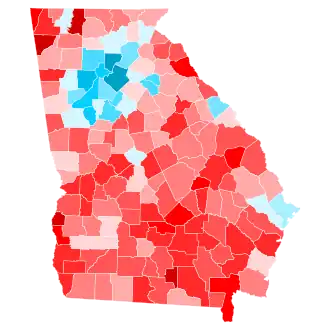 Trump won Georgia by 5.13%, a smaller margin than Mitt Romney's 7.82% in 2012 and even John McCain's 5.20% in 2008. Clinton received 45.3% of the vote, making this one of the few states where she outperformed Barack Obama in 2012.[3] Trump's reduced margin of victory made Georgia one of eleven states (plus the District of Columbia) to vote more Democratic in 2016 than in 2012.[4] This trend would continue into 2020, when Trump became the first Republican to lose Georgia since George H.W. Bush in 1992, though he won it back in 2024 by a 2.2% margin.