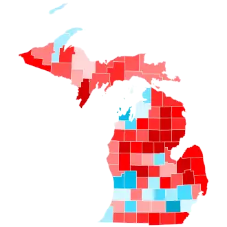 Donald Trump's upset victory highlighted Michigan's new status as a swing state, being bitterly contested in the 2020 election, when former Democratic Vice President Joe Biden narrowly flipped it back into the Democratic column, and in 2024 when Trump flipped it back into the Republican column. Trump's State Campaign was run by Scott Hagerstrom (State Director), CJ Galdes (Deputy State Director), Christopher Morris (Field Director), and Tia Jurkiw[unfit] (Events Coordinator).[35][36] Trump was the first Republican to win Bay, Lake, and Saginaw counties since 1984, Gogebic County since 1972, and Isabella County since 1988. Wayne County was not the most Democratic county in the state for the first time since 1984 (instead, that distinction was held by neighboring Washtenaw County), which has remained true in every election since.