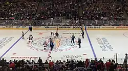 The national anthem for each team playing was played before the start of each game. However, there were two exceptions: no anthem was played for Team Europe because of the team's multiple national representatives, while both "The Star-Spangled Banner" and "O Canada" were played before games Team North America played.[3] Team Europe players wore badges with their respective nations' flags on their jerseys.[4]