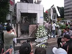 A damaged police station in Sarinah due to grenades in Jakarta attacks
