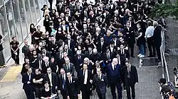 The Law Society of Hong Kong urged the government not to rush the legislation but should stop to conduct extensive consultation before it goes any further. The Bar Association said in response to the concessions that the additional safeguards provided by the government was "riddled with uncertainties ...[and that it] offers scarcely any reliable assurances."[61] On 6 June, some 3,000 Hong Kong lawyers, representing around one quarter of the city's lawyers, marched against the bill. Wearing black, they marched from the Court of Final Appeal to the Central Government Offices. While lawyers expressed grave reservations about the openness and fairness of the justice system in China, limited access to a lawyer, and the prevalence of torture, Secretary for Security John Lee said the legal sector did not really understand the bill.[62]