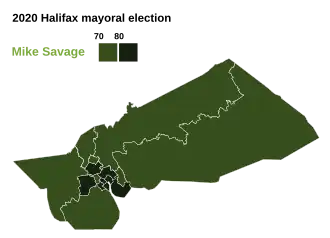 ![]() Results of the 2020 Halifax mayoral election by district | |||||||||||||||||
