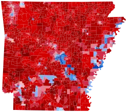 Per exit polls by the Associated Press, Trump's strength in Arkansas came from 86% with White, born again/evangelical Christians. Fifty-two percent of voters opposed changing the Arkansas state flag to remove the star that symbolizes the Confederacy, and these voters backed Trump by 88%–10%.[52]