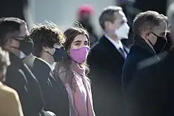 2021: Natalie Biden wearing a matching cloth COVID-19 mask at the inauguration of Joe Biden, her grandfather