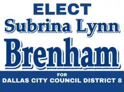 ^ "Brenham hopes to bring about change to Dallas City Council District 8" . North Dallas Gazette . April 11, 2013. Archived from the original on June 1, 2013. Retrieved February 17, 2021 .