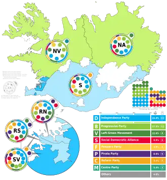 - ^ a b "Úrslit Alþingiskosninga í október 2017". Morgunblaðið. 29 October 2017. Archived from the original on 1 November 2017. Retrieved 1 November 2017.