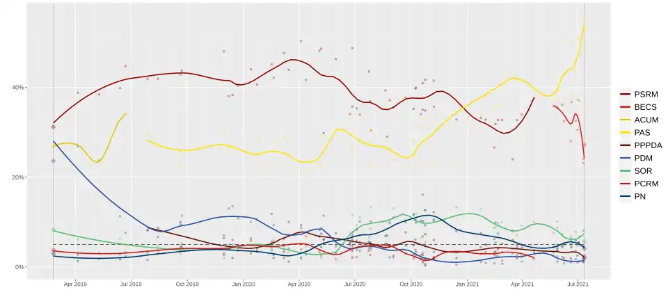- ^ a b Central Election Commission of Moldova (12 July 2021). "Prezenta la vot" [Parliamentary Elections in the Republic of Moldova: Preliminary Results]. pv.cec.md (in Romanian). Archived from the original on 12 July 2021. Retrieved 12 July 2021.