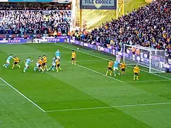 City suffered from inconsistent form in early January 2023. They were knocked out of the EFL Cup by Southampton in a 2–0 defeat at St Mary's Stadium, and dropped league points against Everton and Manchester United to allow Arsenal to open up an eight-point gap at the top of the table. The latter derby defeat included a controversial equalising goal for their rivals, which many observers deemed should have been ruled out for offside.[37] However, the Blues also convincingly beat Chelsea 4–0 in the FA Cup to reach the fourth round.