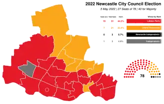 The Local Government Boundary Commission for England produced new boundaries for Newcastle ahead of the 2018 election, meaning that the 2018 elections were all-out, with all councillors being elected before returning to electing by thirds. Candidates up for re-election in 2022 are those who came first in each ward in 2018.