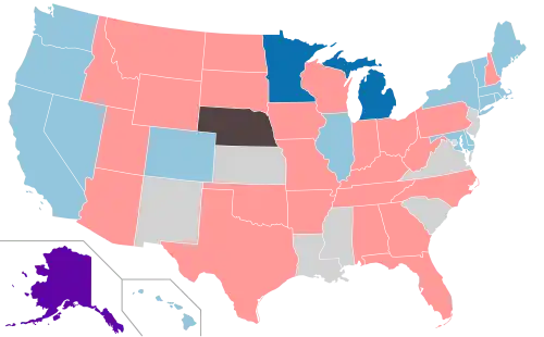 Although the 2022 elections were initially expected to be highly Republican-favoring, given the increasing unpopularity of Democratic president Joe Biden, the overturning of Roe v. Wade in June dramatically shifted the national political environment. By the time of the elections, a similar number of Republican- and Democratic-controlled chambers were considered competitive, mostly in states won narrowly by Biden in the 2020 presidential election. Democrats' best chances for gains were seen in states such as Michigan, Arizona, and Pennsylvania, while Republicans' best chances were in Alaska,[a] Maine, Nevada, Colorado, and Oregon. Both chambers of the Minnesota Legislature, one controlled by each party, were seen as highly-competitive. Overall, fewer legislative chambers were seen as competitive compared to previous cycles.[20]