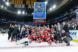Team photo following Northeastern's victory in the 2024 men's Beanpot tournament