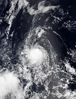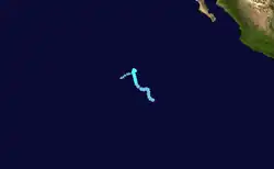 A tropical wave entered the Eastern Pacific on July 16 after moving across Central America.[60] A broad low pressure area associated with the wave formed south of the coast of southwestern Mexico on July 17.[61] The disturbance became better organized by July 20, and at 12:00 UTC, Tropical Depression Four-E formed southwest of the Baja California peninsula.[60] Later that day, however, the depression's structure began deteriorating. It soon lost all of its deep convection,[62] and degenerated into a remnant low by 00:00 UTC on July 22.[60]