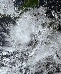On June 25, after dissipating over the central Caribbean, the remnant wave of Atlantic Tropical Storm Bret moved over Central America, merging with a nearby low-pressure area.[37] Slow to organize, the disturbance ultimately coalesced, becoming Tropical Depression Two‑E at 09:00 UTC on June 29.[38] Later, at 21:00 UTC, the depression became Tropical Storm Beatriz while located about 105 mi (170 km) south-southwest of Punta Maldonado, Guerrero.[39] Paralleling the coast, Beatriz was upgraded to a hurricane at 15:00 UTC the next day and soon attained peak winds of 85 mph (140 km/h). An eye began to appear on satellite around this time.[40] However, since Beatriz's circulation was severely disrupted by land interaction, the system weakened to a tropical storm early on July 1,[41] and Beatriz dissipated later that day just offshore from Cabo Corrientes, Jalisco.[42]