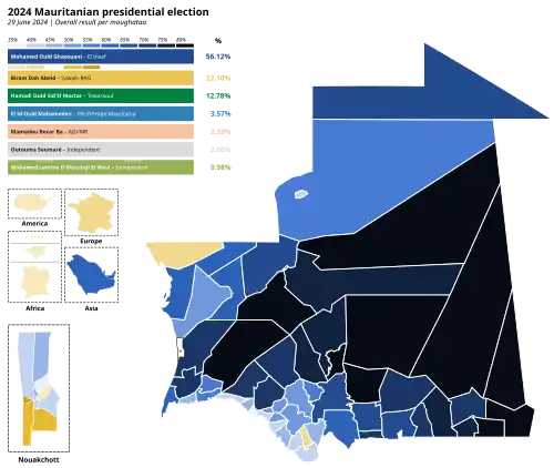 - ^ "Mauritania's President Mohamed Ould Ghazouani on track for reelection, provisional results show". Associated Press. 30 June 2024. Retrieved 30 June 2024.