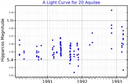 A light curve for 20 Aquilae, plotted from Hipparcos data[1]