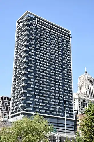 235 Van Buren is a high-rise condominium building located in Chicago's Loop neighborhood near the Willis Tower and the 311 South Wacker Drive Building. The 46 story skyscraper was designed by Perkins & Will and built by CMK Companies, a Chicago-based real estate development company.[2] As the building's name suggests, it is located at 235 West Van Buren Street adjacent to the Chicago River at the eastern terminus of Eisenhower Expressway.